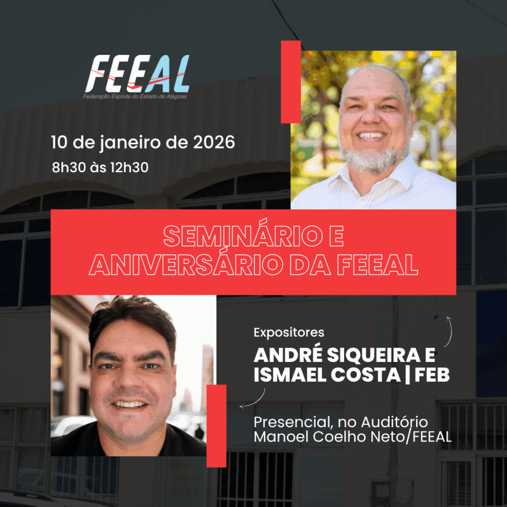 👉🏽 Seminário: “Sustentabilidade Integral: práticas para um movimento espírita responsável”, com André Siqueira e Ismael Costa (FEB), e ainda momento musical e bolo de parabéns!